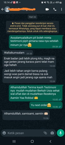 Komposisi : Jahe, Kayu Manis, Serai, Jeruk Nipis, Kunyit, Daun Kelor, Jati Cina, Jati Belanda