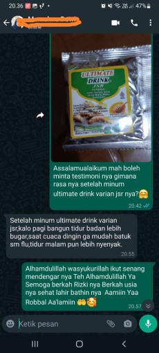 Kualitas produk Ultimate Drink dijamin melalui tiga pilar utama, yaitu memilih bahan herbal alami terbaik, proses modern dan higienis untuk mempertahankan efektivitasnya, serta jaminan keamanan yang terbukti melalui sertifikasi Halal resmi dari Majelis Ulama Indonesia (MUI) dan izin distribusi P-IRT dari Dinas Kesehatan. Ini menjadikan setiap produk sebagai minuman kesehatan yang aman, dapat diandalkan, dan berkualitas tinggi